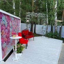 Если вы хотите отметить знаменательное событие с размахом, то стоит арендовать летнюю веранду. Просторная площадка с комфортом вместит до 100 персон. Возле постройки лаундж зона со скамейками, а также достаточно места, чтобы организовать приветственный фуршет для гостей.